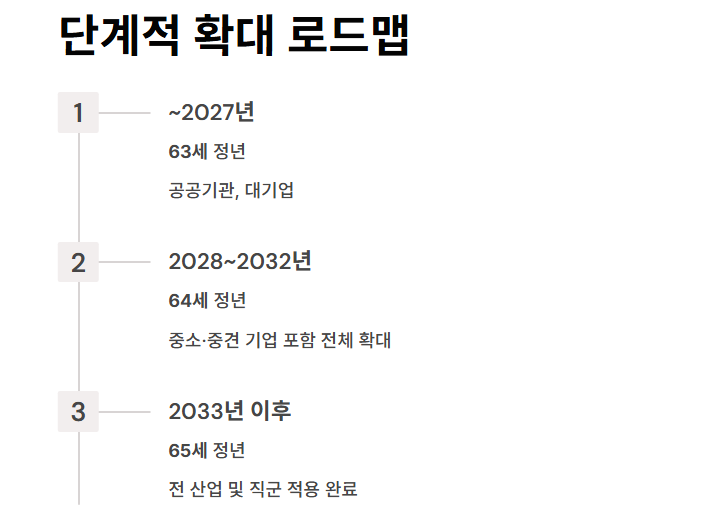 | 2028년~2032년 | 64세 | 중소·중견 기업 포함 전체 확대 |