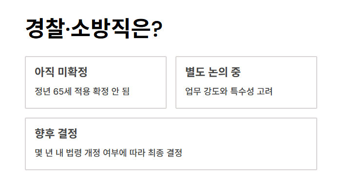 경찰, 소방공무원 등 특수직군은 아직 정년 65세 적용이 확정되지 않았습니다.