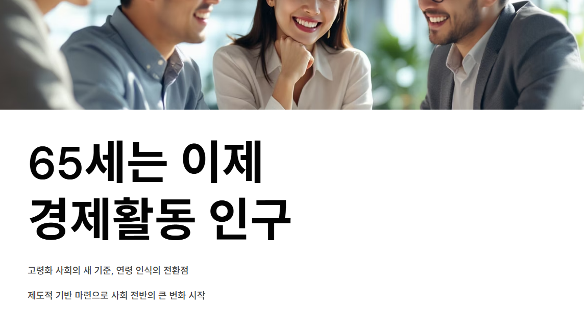 “65세는 이제 노인이 아니라 경제활동 인구”라는 인식이 자리 잡고 있습니다.