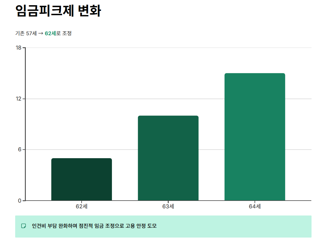 이 제도는 연장 근무에 따른 인건비 부담을 줄이면서, 연차별로 점진적으로 임금을 조정해 고용 안정을 도모하는 구조입니다.