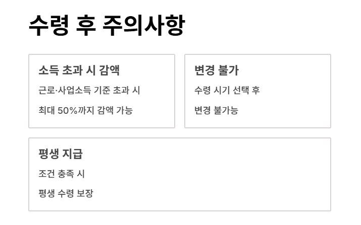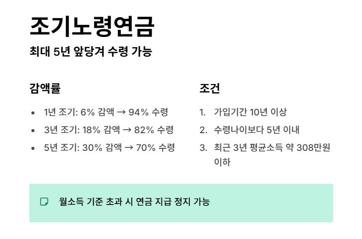 | 조기수령 | 최대 5년 전, 감액 6%/년 적용 |