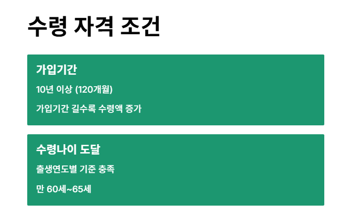 이 두 조건이 모두 충족되어야 연금 수령이 가능합니다.