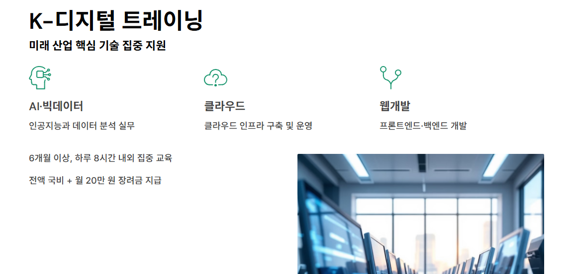 ‘K-디지털 트레이닝’이라는 이름으로 집중적으로 지원됩니다.