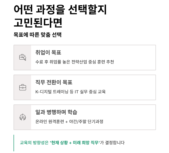 → 수료 후 취업률 높은 전략산업 중심 훈련 추천 - 직무 전환이 목표라면