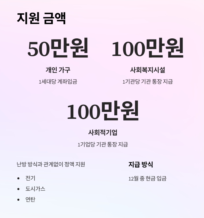 | 개인 가구 | 1세대당 50만 원 | 계좌입금 |