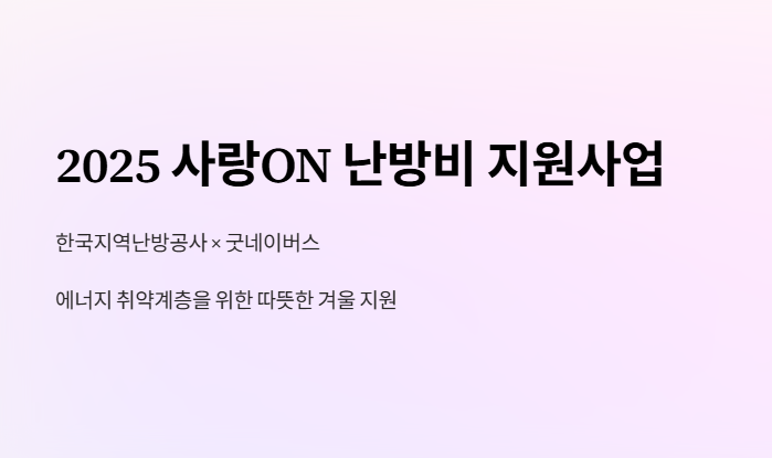 2025년 겨울철 난방비 부담을 줄이기 위해 한국지역난방공사와 굿네이버스가 함께 운영하는 사랑ON 난방비 지원사업이 다시 시작됩니다. 특히 에너지 취약계층을 대상으로 최대 50만 원까지 지원금이 지급되며, 사회복지시설과 사회적기업도 각각 100만 원까지 지원 대상에 포함됩니다. 지금부터 신청 방법과 대상, 유의사항까지 빠짐없이 정리해드립니다.