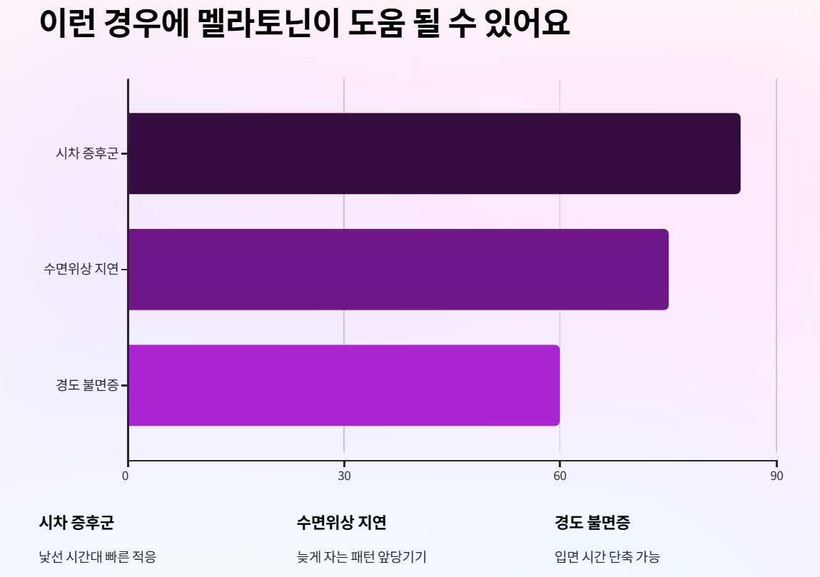 멜라토닌은 모든 수면 문제에 다 효과적인 건 아니지만, 특정 상황에서는 유의미한 도움을 줄 수 있어요.