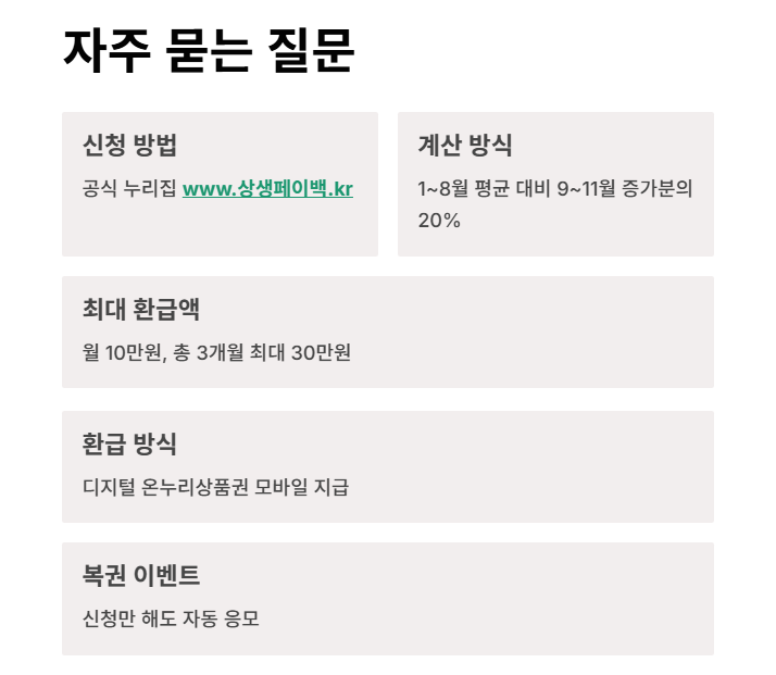 | 신청은 어디서 하나요? | 공식 누리집 www.상생페이백.kr |