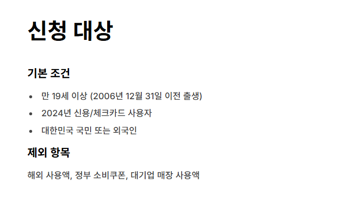 단, 해외 사용액이나 정부 소비쿠폰, 대기업 매장 사용액 등은 제외되니 참고하세요.
