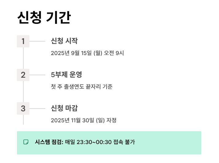 또한, 신청 첫 주는 출생연도 끝자리 기준 5부제로 운영되므로 미리 공식 누리집을 확인하세요.