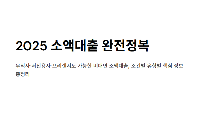 2025년 현재, 소액대출은 무직자, 저신용자, 프리랜서 등 다양한 상황에서도 빠르게 이용 가능한 선택지가 다양해졌습니다. 특히 비대면 신청이 보편화되며 시간과 장소 제약 없이 간편하게 대출을 신청할 수 있는데요. 이 글에서는 조건별, 절차별, 유형별로 소액대출을 아주 자세히 풀어드립니다. 급전이 필요한 상황에서 유리한 선택을 할 수 있도록 핵심 정보를 정리해드립니다.