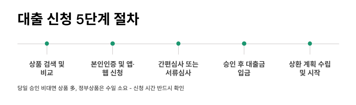 | 정부지원 상품(햇살론 등) | 저신용·저소득 대상, 서류 필요 | 9~15% | 장기대출 적합, 심사 절차 복잡 |
