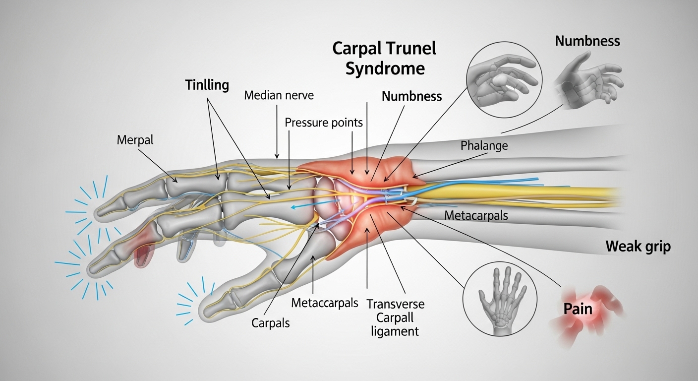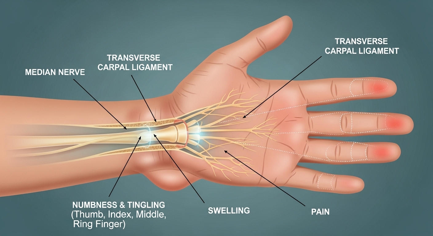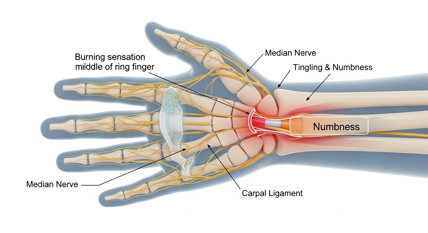 손목터널증후군이라 해서 꼭 손목만 아픈 건 아닙니다. 오히려 손가락 끝의 감각 저하나 찌릿한 통증이 더 자주 나타나죠. 특히 밤이나 새벽에 통증이 심해지는 경우가 많아 숙면에 방해되기도 합니다.