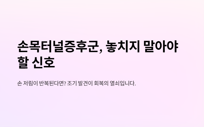 손목이 저릿저릿하거나 밤에 손이 저려서 잠에서 깬 적 있으신가요? 단순 피로로 생각하고 넘기기 쉬운 증상이지만, 반복되거나 심해진다면 '손목터널증후군'일 가능성이 높습니다. 손목을 지나가는 신경이 눌리면서 생기는 이 질환은 조기에 발견하면 회복이 빠르지만, 늦게 치료하면 손의 감각이나 힘이 떨어질 수 있어요. 오늘은 꼭 알아둬야 할 손목터널증후군의 대표적인 증상들을 상세히 정리해드립니다.