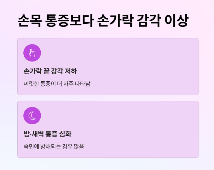손목 통증보다 손가락 감각 이상