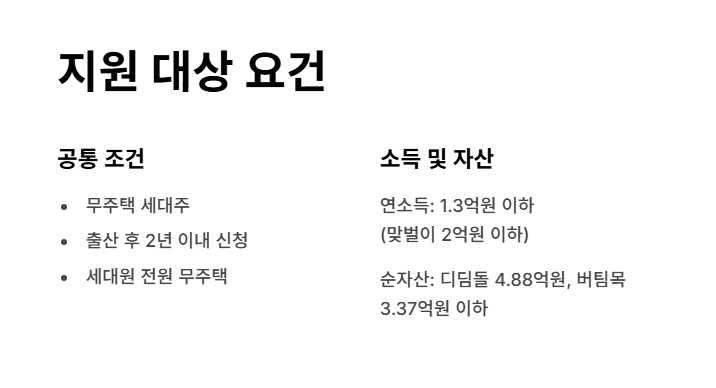 | 주택소유 | 세대원 전원 무주택 | 세대원 전원 무주택 |