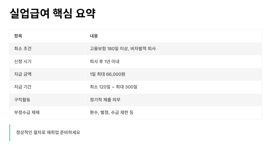 표: 실업급여 핵심 요약