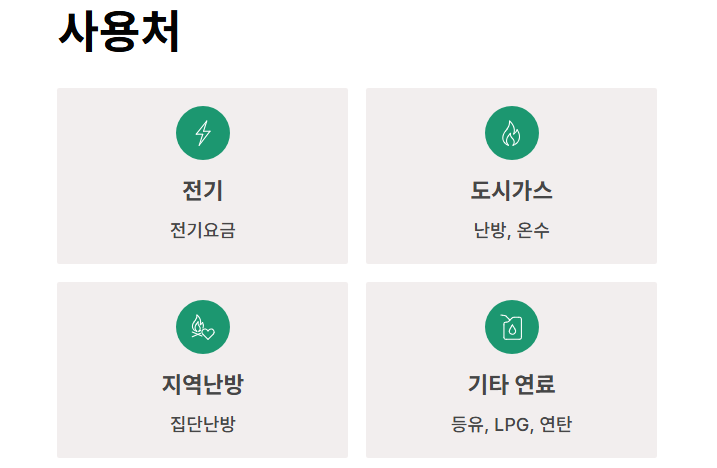 | 도시가스 | 난방, 온수 등 |