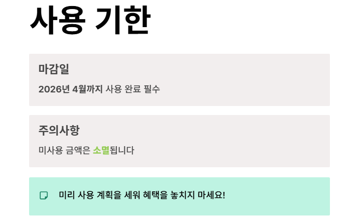 미사용 금액은 소멸되니 주의가 필요합니다.