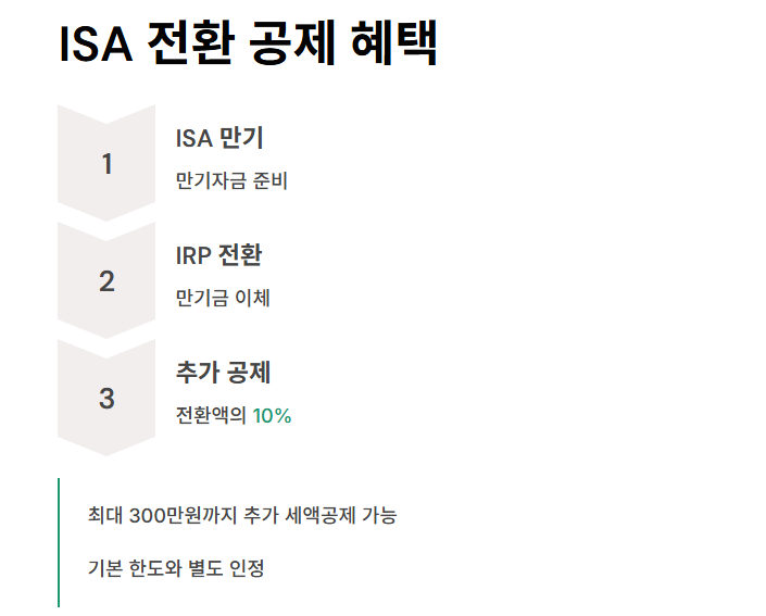 | ISA 전환 공제 | 불가 | 최대 300만원 추가 공제 가능 |