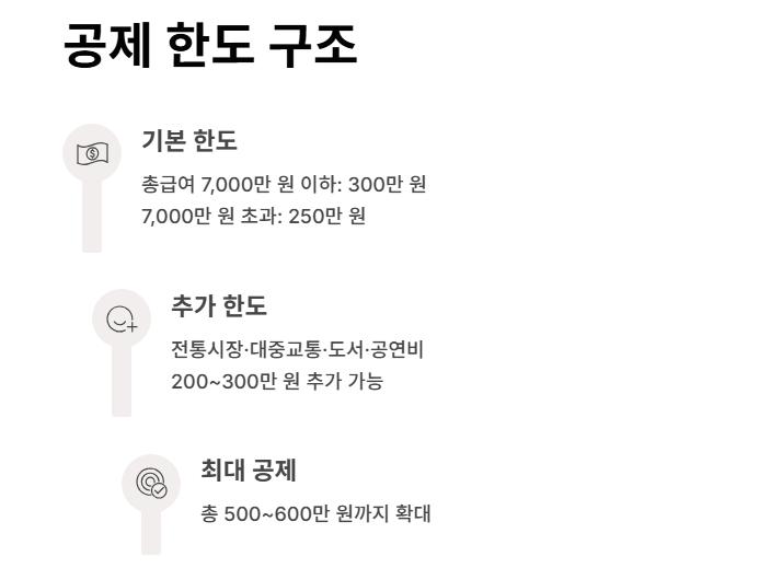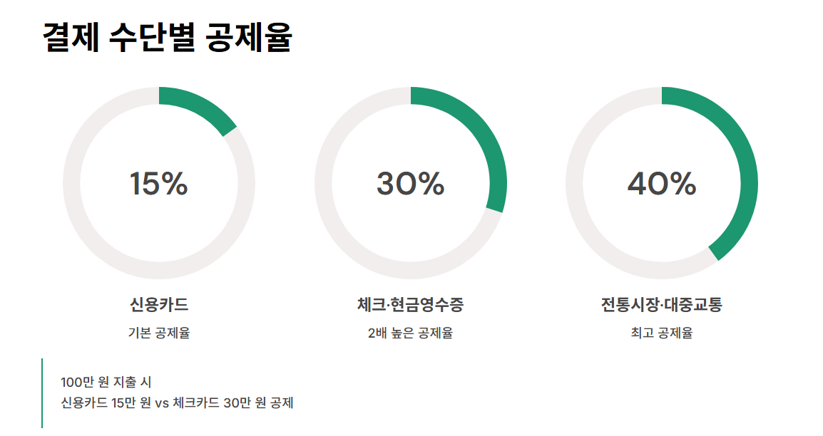 즉, 실질적으로 세금 감면 효과는 있지만, 카드 긁을 때 바로 돌려받는 건 아니라는 점. 이 차이를 정확히 알고 있어야 합니다.