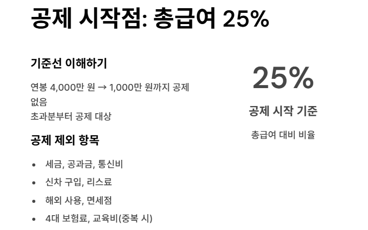 공제는 총급여의 25% 초과분부터 적용됩니다