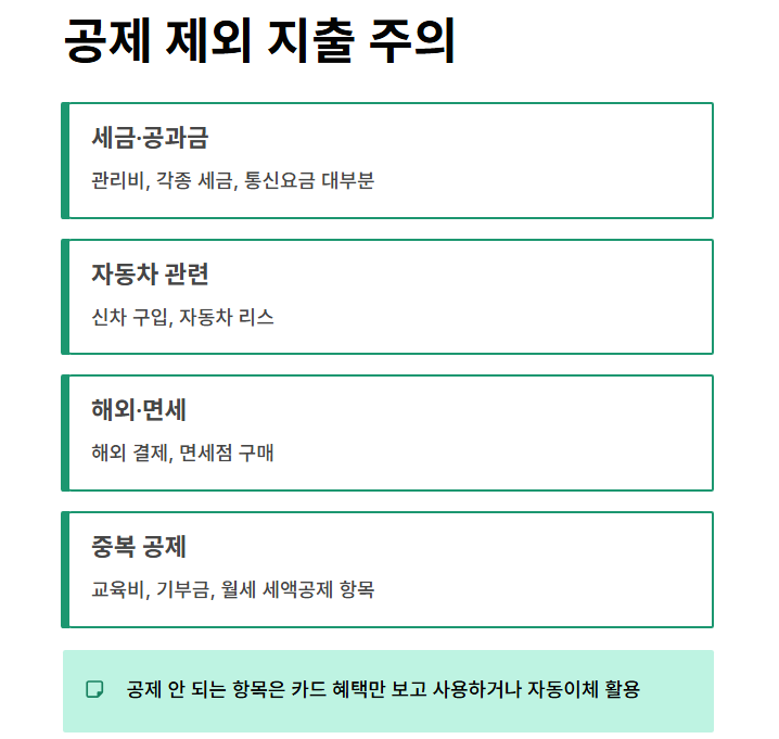 - 공제 제외 항목은 그냥 카드 혜택만 보고 사용하기