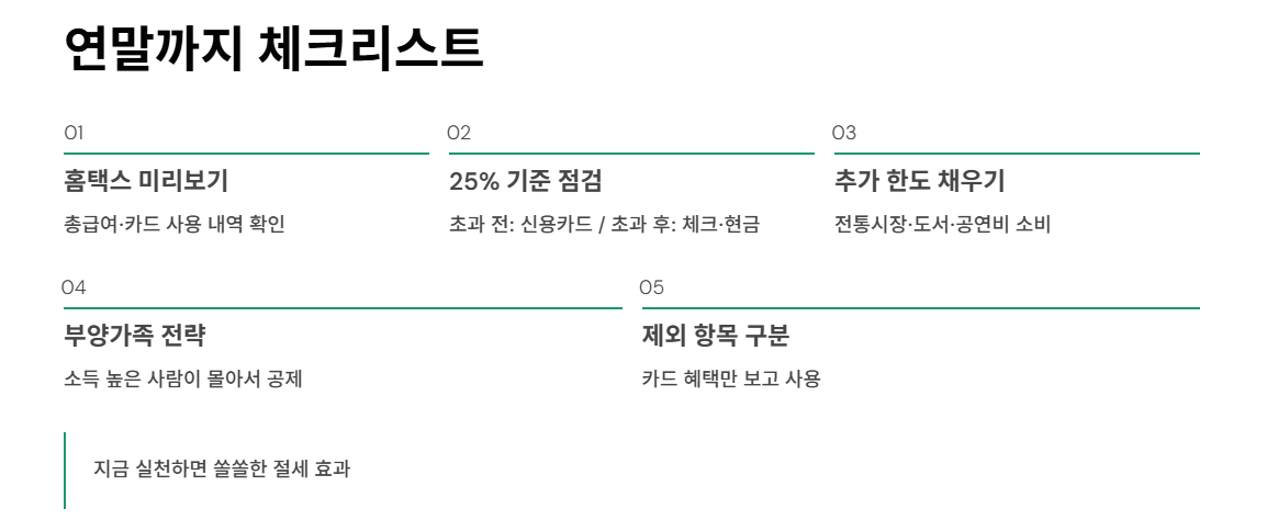 3단계 - 전통시장·대중교통·도서·공연비는 연중 꾸준히 소비하면서 별도 공제한도를 노려야 합니다.
