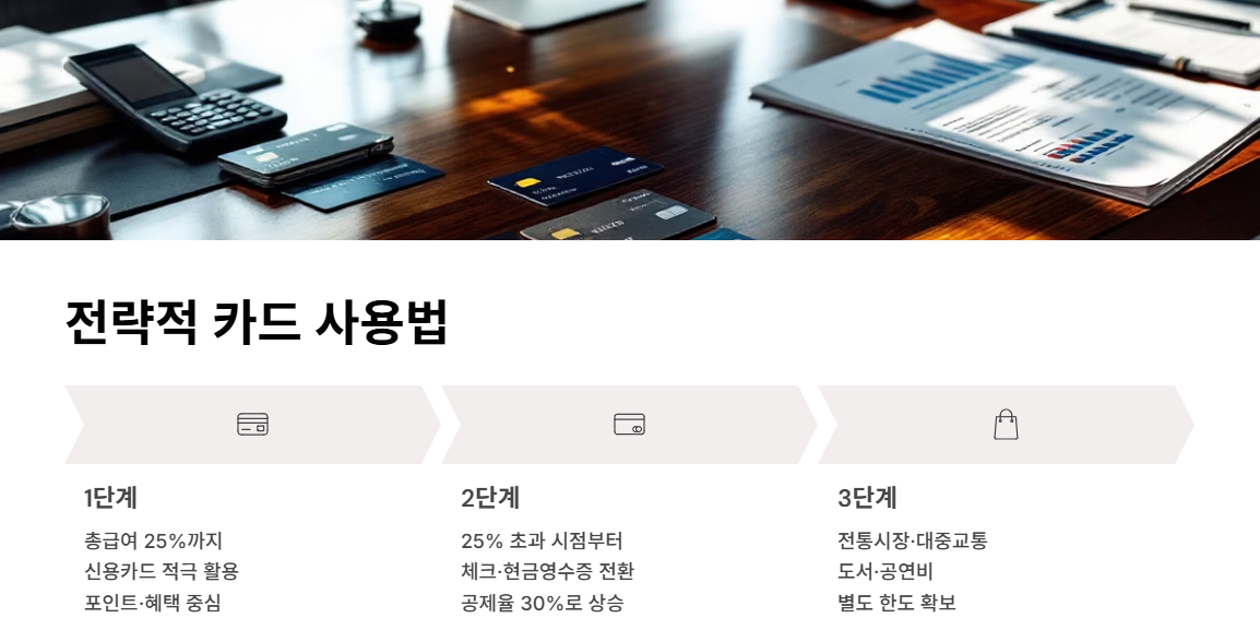 1단계 - 총급여의 25%까지는 신용카드를 적극 활용하세요.