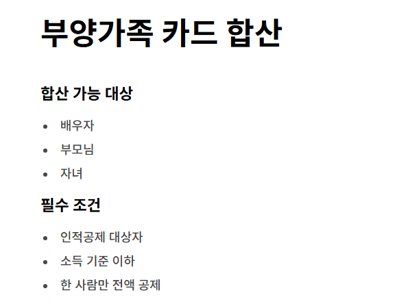 부양가족 카드 사용도 합산 가능합니다