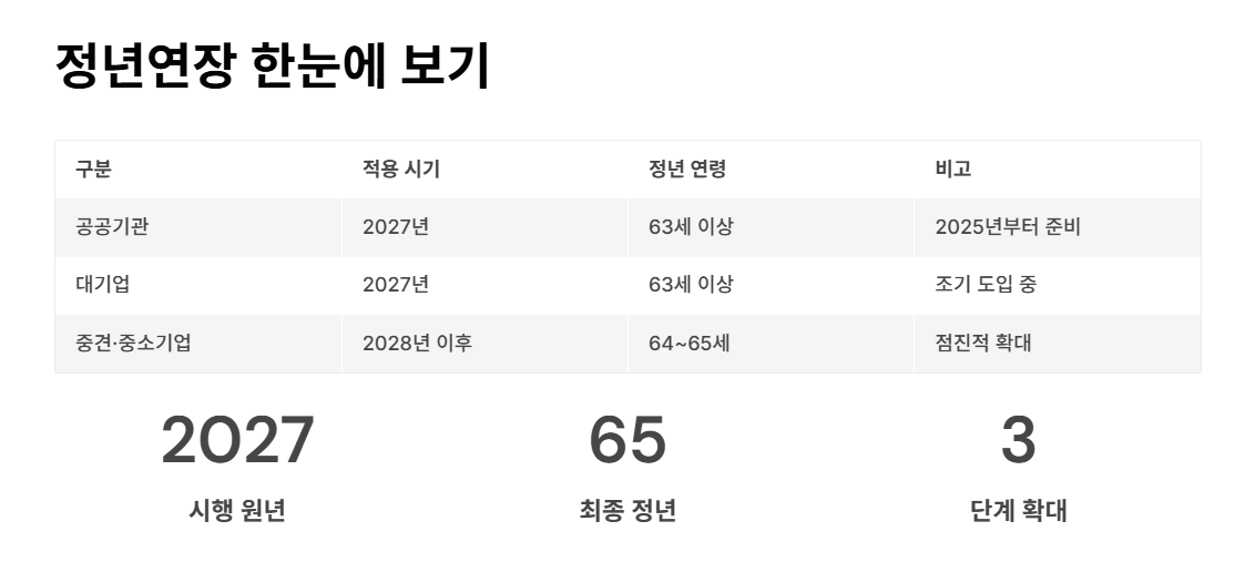 | 중견·중소기업 | 2028년 이후 | 64~65세 | 점진적 확대 예정 |