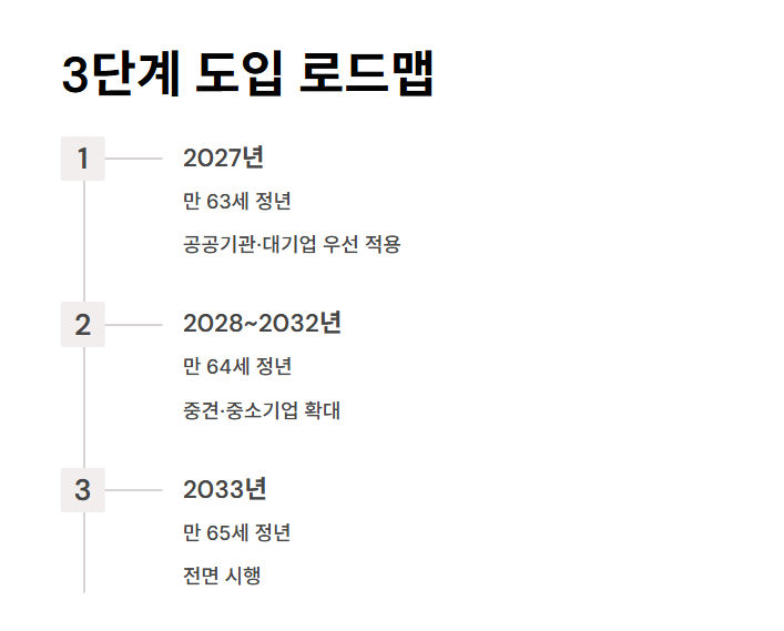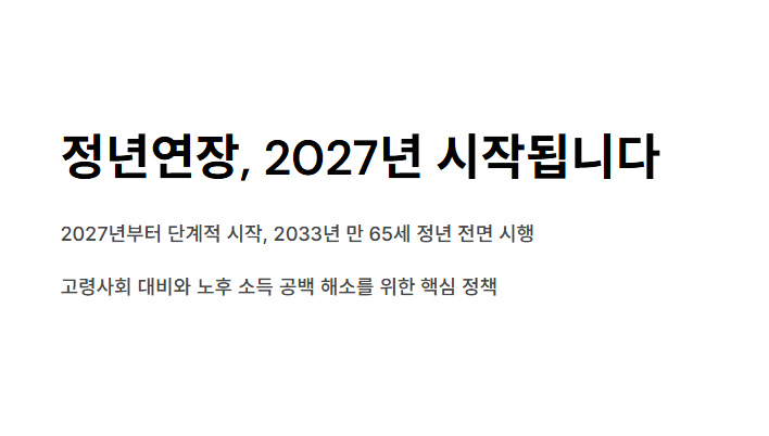 첫 번째는 2027년부터 시작되는 63세 정년 확대입니다. 이 시기에는 공공기관과 대기업이 우선적으로 대상이 됩니다.
