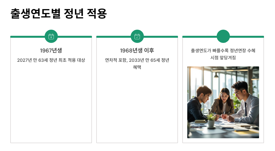 출생연도별 정년 적용 시점은 이렇게 달라집니다