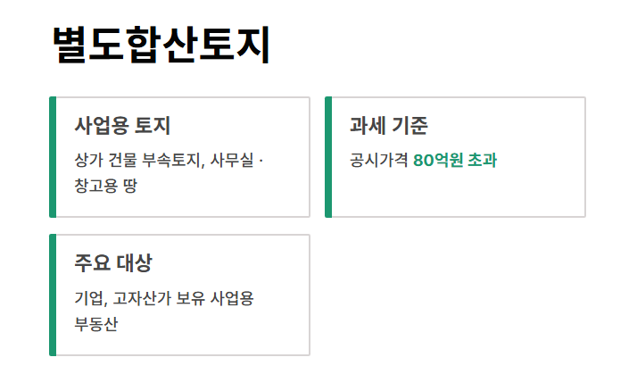 | 별도합산토지 | 80억원 초과 | 0.5%~0.7% | 상가, 사무실용 부속토지 |