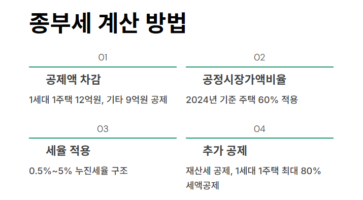 | 주택 | 1주택 12억, 다주택 9억 초과 | 0.5%~5% | 1세대1주택은 공제 및 세액공제 가능 |