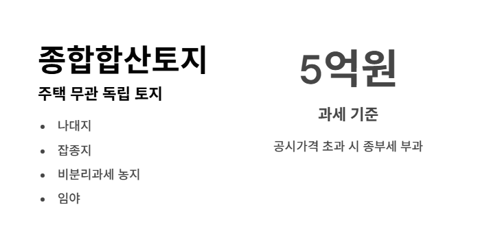 | 종합합산토지 | 5억원 초과 | 1%~3% | 나대지, 임야 등 |