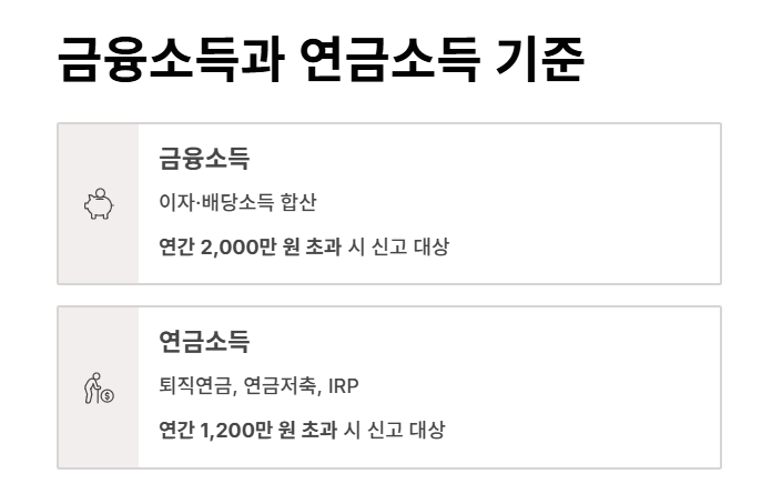 | 금융소득 | 이자·배당 합산 2,000만 원 초과 |