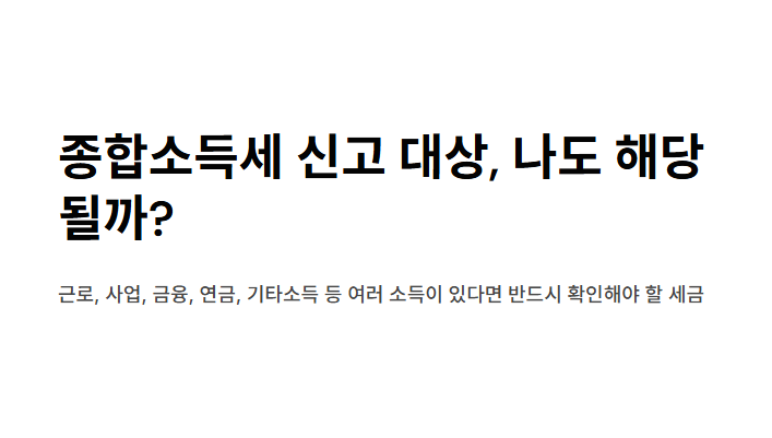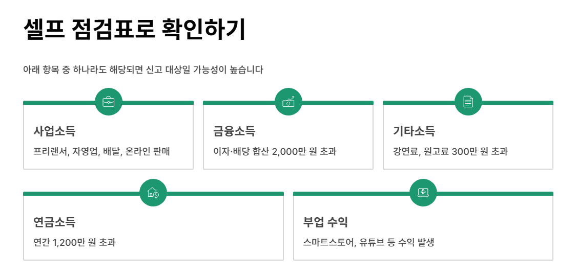 아래 항목 중 하나라도 해당된다면 종합소득세 신고 대상일 가능성이 높습니다.
