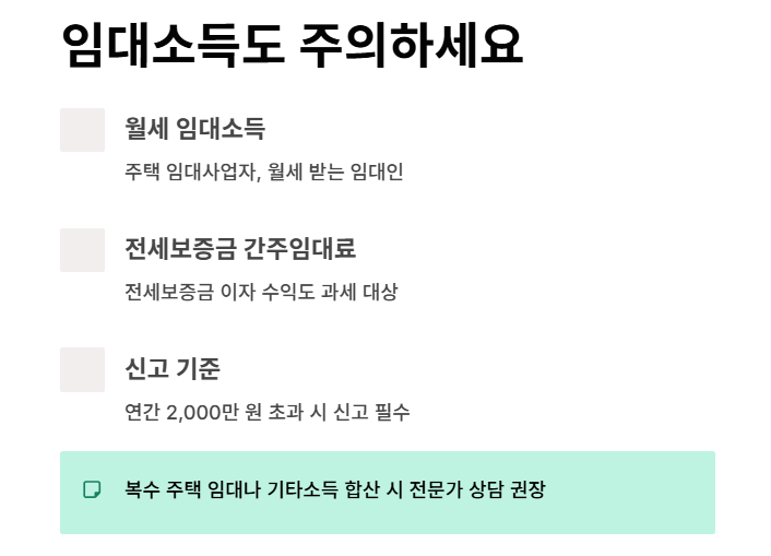임대소득도 주의: 전세보증금 이자 포함