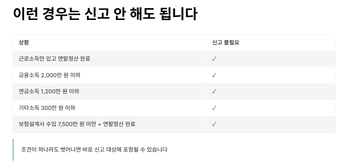 아래와 같은 경우는 종합소득세 신고 대상이 아닙니다.