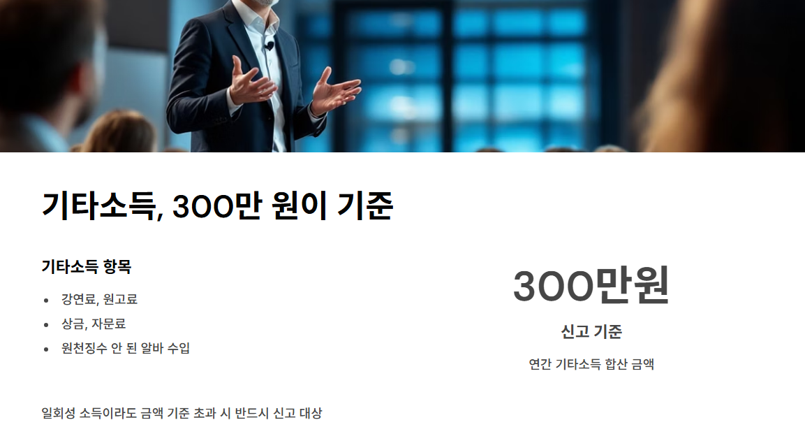 | 기타소득 | 강연료, 원고료, 300만 원 초과 |
