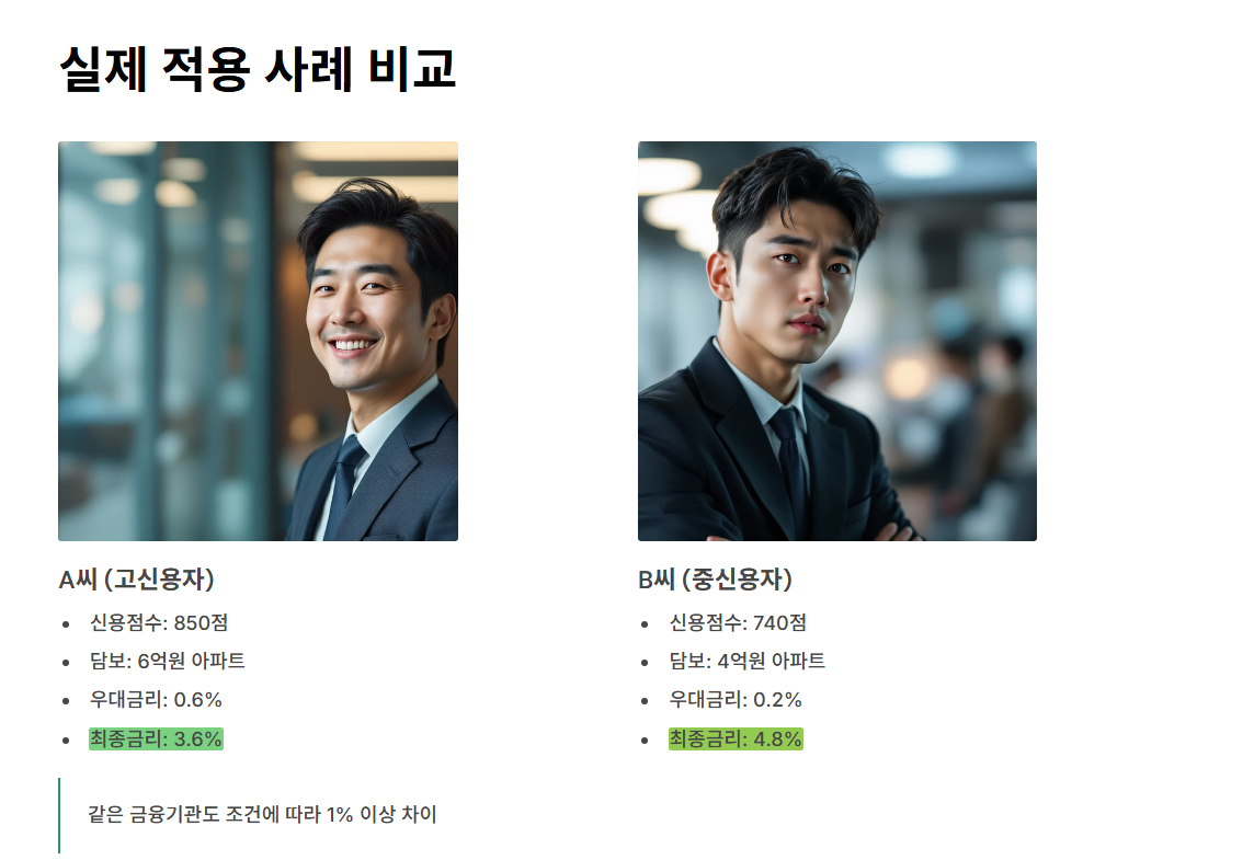 실제 사례를 보면 금리 차이는 더욱 뚜렷하게 느껴집니다.