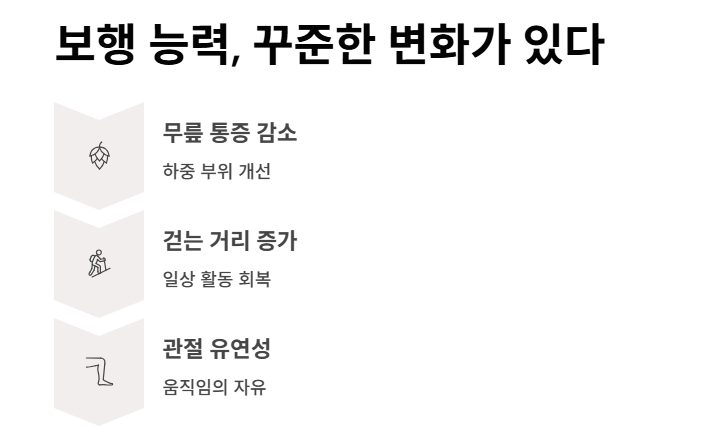 실제로 일부 연구에서는 진통제 없이도 관절 통증이 줄어들었다는 결과도 있었고요. 특히 관절이 뻣뻣하게 느껴질 때 유연성을 회복하는 데에도 도움이 됩니다.