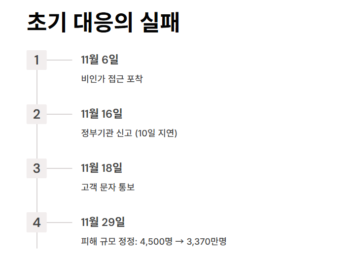 | 2025.11.29 | 피해 규모 전체 계정으로 정정 발표 |