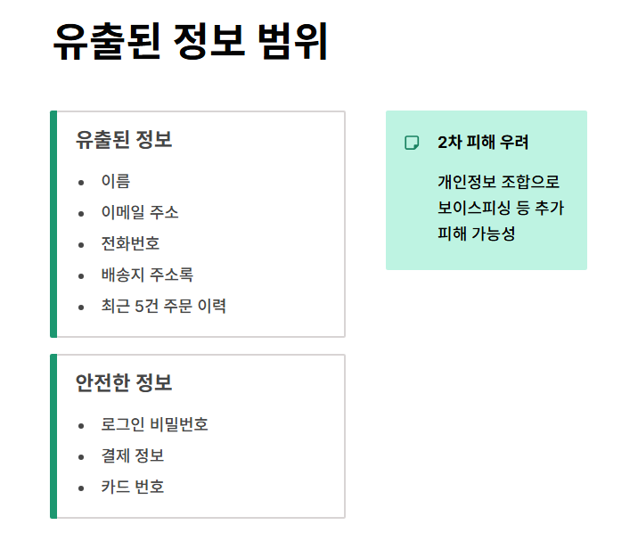 반면, 쿠팡은 로그인 비밀번호, 결제 정보(카드 번호 등)는 안전하다고 밝혔습니다. 하지만 개인정보의 조합만으로도 보이스피싱 등 2차 피해 가능성이 있어 소비자 불안은 여전합니다.