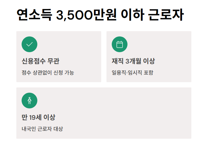 연소득 3,500만원 이하 근로자, 조건 없이 신청 가능