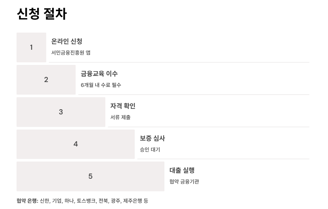 | 1단계 | 온라인 신청 (서민금융진흥원 앱 등) |