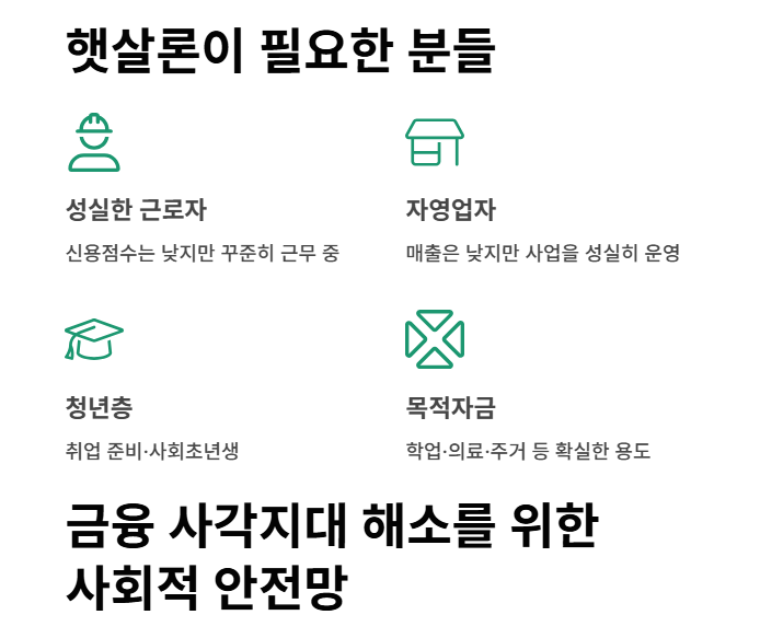 햇살론은 단순히 돈을 빌려주는 것이 아닌, 금융 사각지대를 해소하기 위한 사회적 안전망입니다.